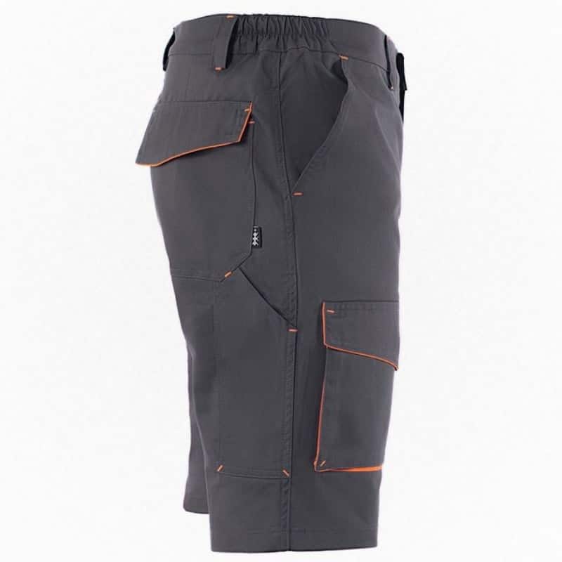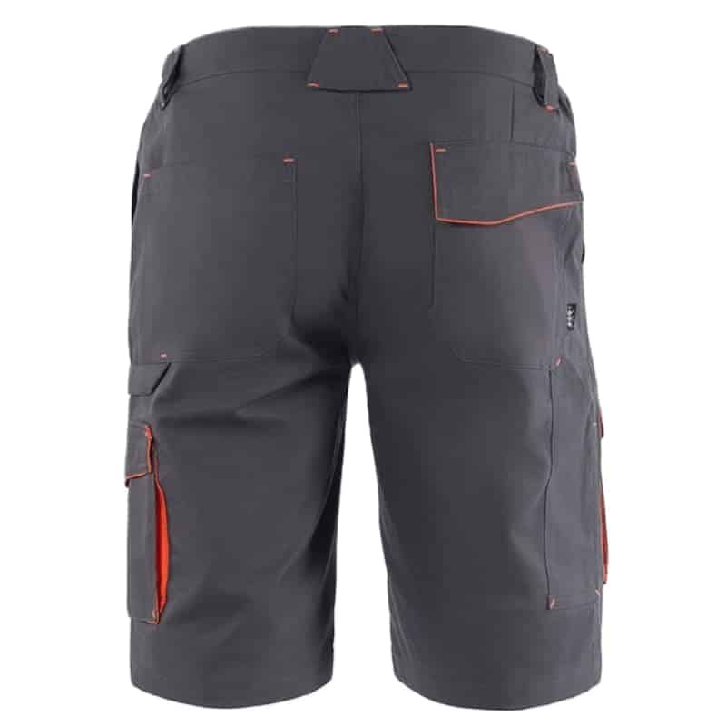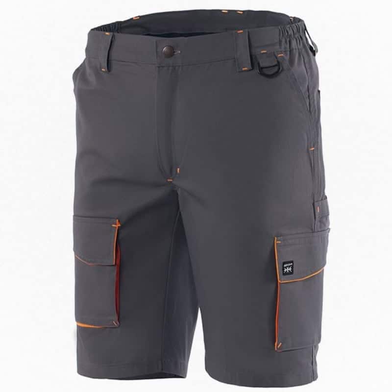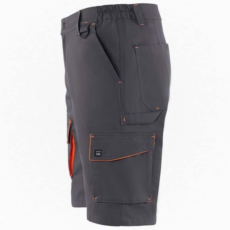 Βερμούδα εργασίας που κλείνει μπροστά με φερμουάρ υψηλής αντοχής και μεταλλικό κουμπί. Μία πλαϊνή τσέπη στον αριστερό μηρό που κλείνει με καπάκι και velcro. Μία τσέπη μπροστά στον δεξιό μηρό που κλείνει με καπάκι και velcro. Δύο τσέπες λοξές μπροστά, μία τσέπη που κλείνει με καπάκι πίσω δεξιά και μία τσέπη χωρίς καπάκι πίσω αριστερά. Μία τσέπη εργαλείων στον δεξιό μηρό. Πέντε θηλύκια για συγκράτηση ζώνης. Γαζιά ασφαλείας στο χρώμα της διχρωμίας. Κρίκος πρόσδεσης εργαλείων. Ελληνικό προϊόν.
