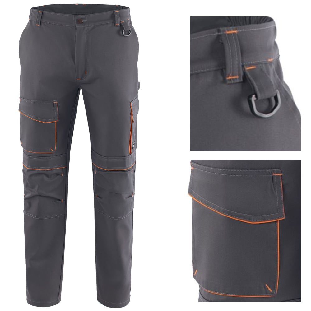 Κλείνει μπροστά με φερμουάρ υψηλής αντοχής και μεταλλικό κουμπί. Μία πλαϊνή τσέπη στον αριστερό μηρό που κλείνει με καπάκι και velcro. Μία τσέπη μπροστά στο δεξί μηρό που κλείνει με καπάκι και velcro. Δύο τσέπες λοξές μπροστά μία τσέπη που κλείνει με καπάκι πίσω δεξιά και μία τσέπη χωρίς καπάκι πίσω αριστερά. Μία τσέπη εργαλείων στο δεξιό μηρό. Θήκη για επιγονατίδες. Διχρωμία στις τσέπες. Πονταρισιές στο χρώμα της διχρωμίας. Διακοσμητικός κρίκος. Πέντε θηλύκια για συγκράτηση ζώνης. Διαθέσιμα σε 3 χρώματα. Ελληνικό προϊόν.