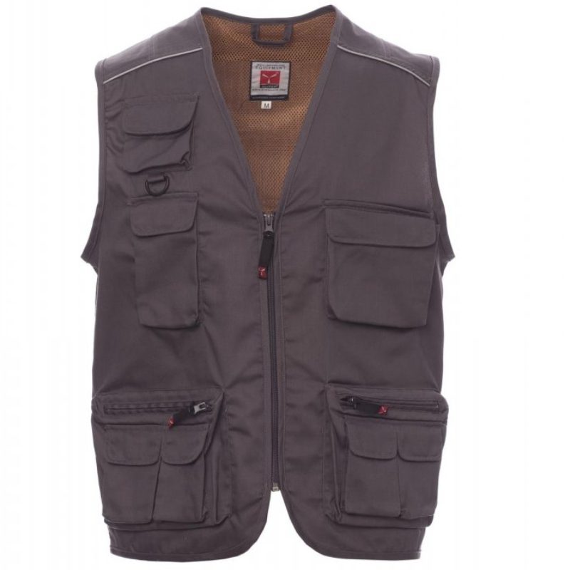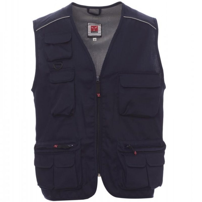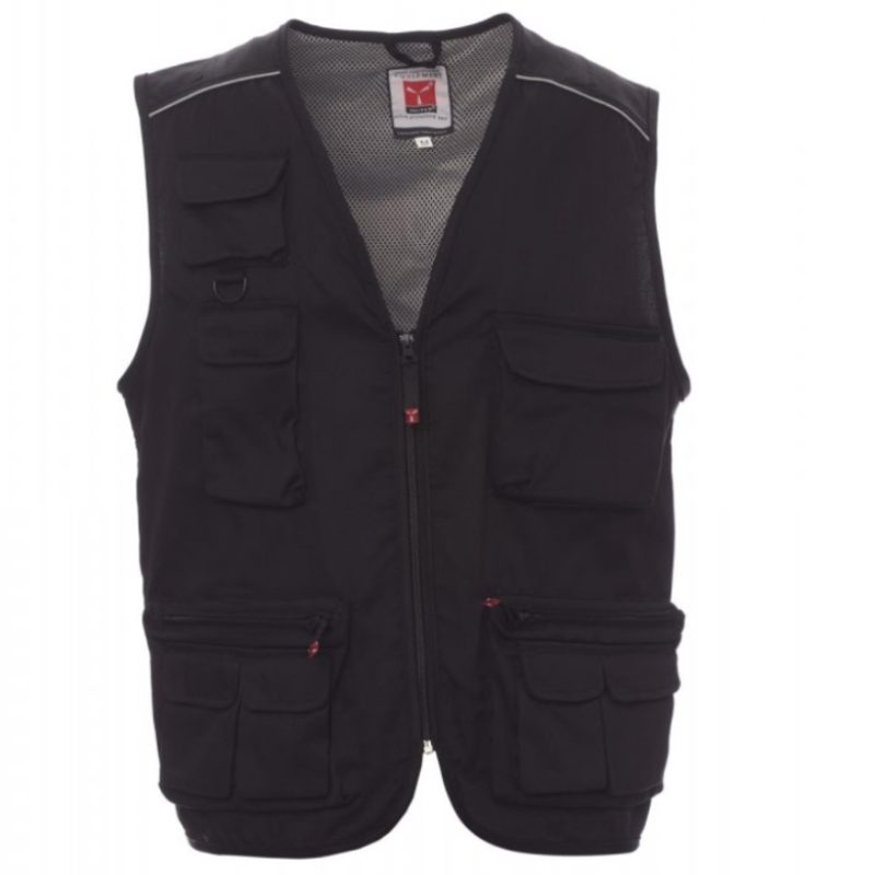 Καλοκαιρινό γιλέκο, φερμουάρ, μετωπική σύνθεση πολλαπλών τσέπης με αναστρέψιμο κάτοχο εμβλημάτων, αντανακλαστικές ταινίες στους ώμους και την πλάτη, ευρύ πίσω άνοιγμα, εσωτερικό: επένδυση ξηρής τεχνολογίας, σε αντιθέσεις χρώματος, ανοιχτό για διευκόλυνση της εκτύπωσης και των κεντημάτων.