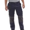 Κλείνει μπροστά με φερμουάρ υψηλής αντοχής και μεταλλικό κουμπί. Μία πλαϊνή τσέπη στον αριστερό μηρό και μία στο δεξιό που κλείνει με καπάκι και velcro. Δύο τσέπες λοξές μπροστά και δύο τσέπες πίσω. Πέντε θηλύκια για συγκράτηση ζώνης. Σύνθεση υφάσματος 65% polyester, 35% cotton
