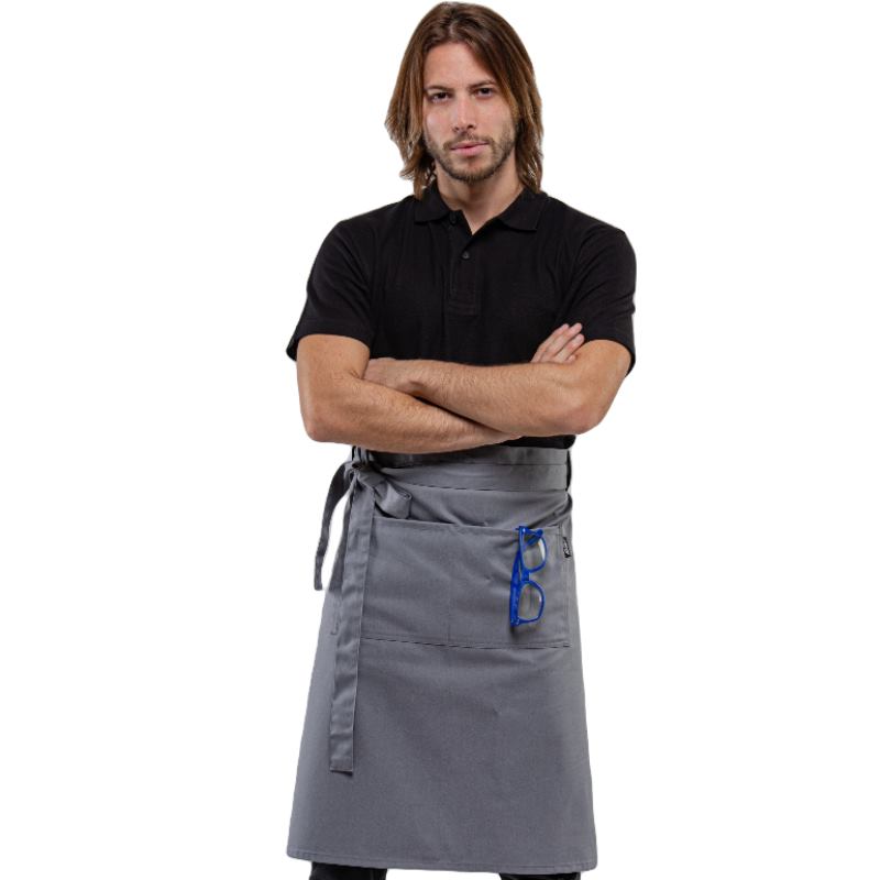 Ποδιά γονάτου με φαρδύ ζωνάρι στη μέση. Μεγάλη κεντρική τσέπη με δύο χωρίσματα. Σύνθεση υφάσματος: 65% polyester 35% cotton Βάρος : 245gr/m2
